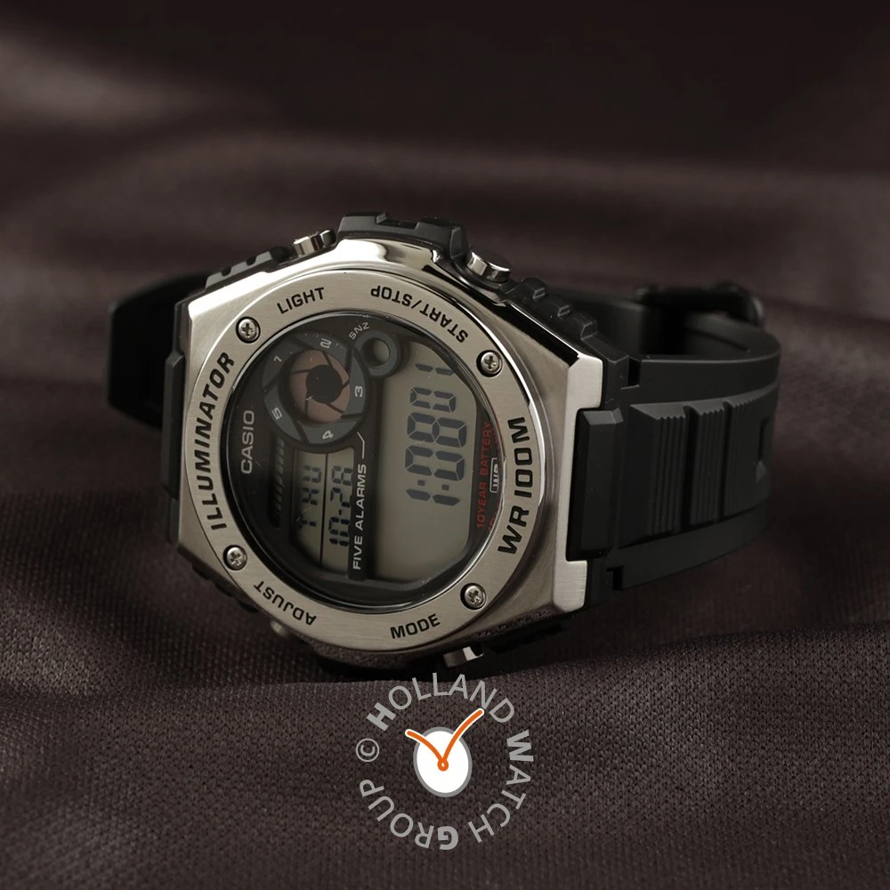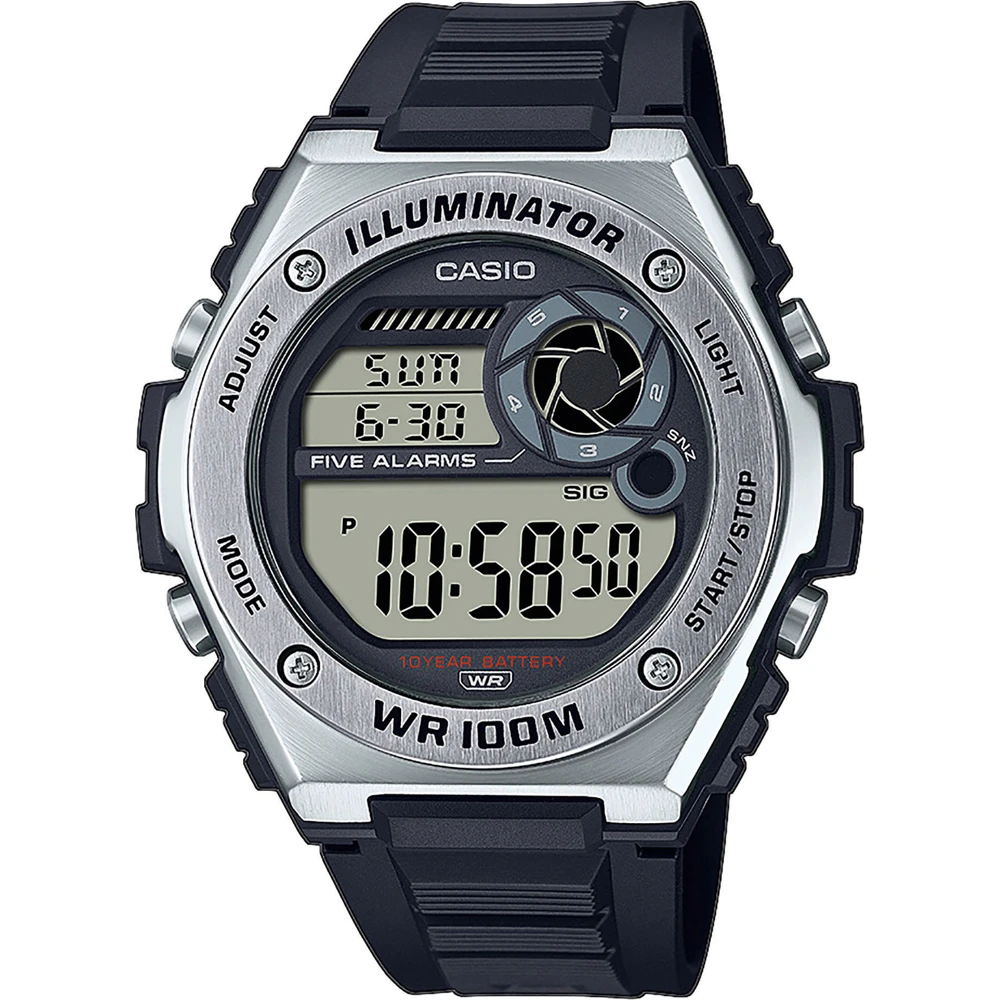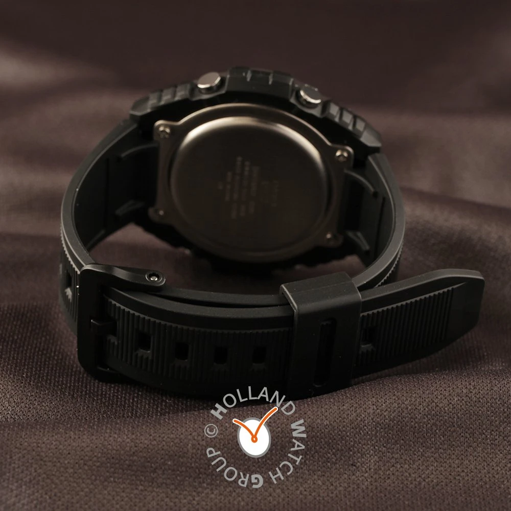 This Casio watch has a case made of stainless steel with a diameter of 50.7 mm and is fitted with a rubber band. Inside the case lies a Casio movement and the watch features a Mineral crystal.