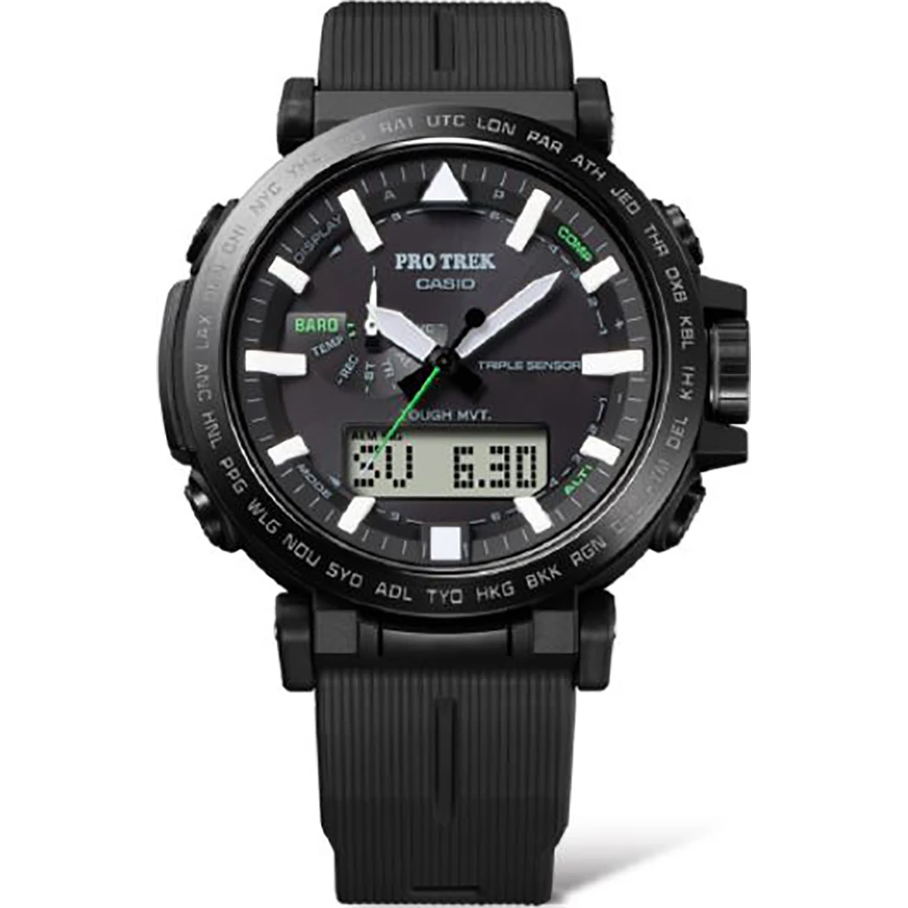 This Casio watch has a case made of plastic with a diameter of 51.5 mm and is fitted with a plastic / resin band. Inside the case lies a Casio movement and the watch features a Mineral crystal.