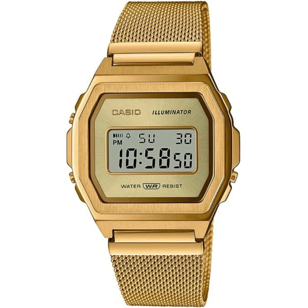 This Casio watch has a case made of stainless steel with a diameter of 39.6 mm and is fitted with a metal band. Inside the case lies a Casio movement and the watch features a Mineral crystal.