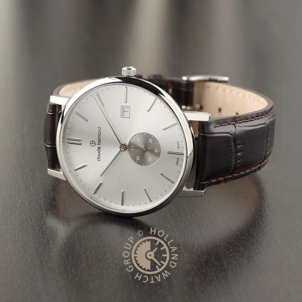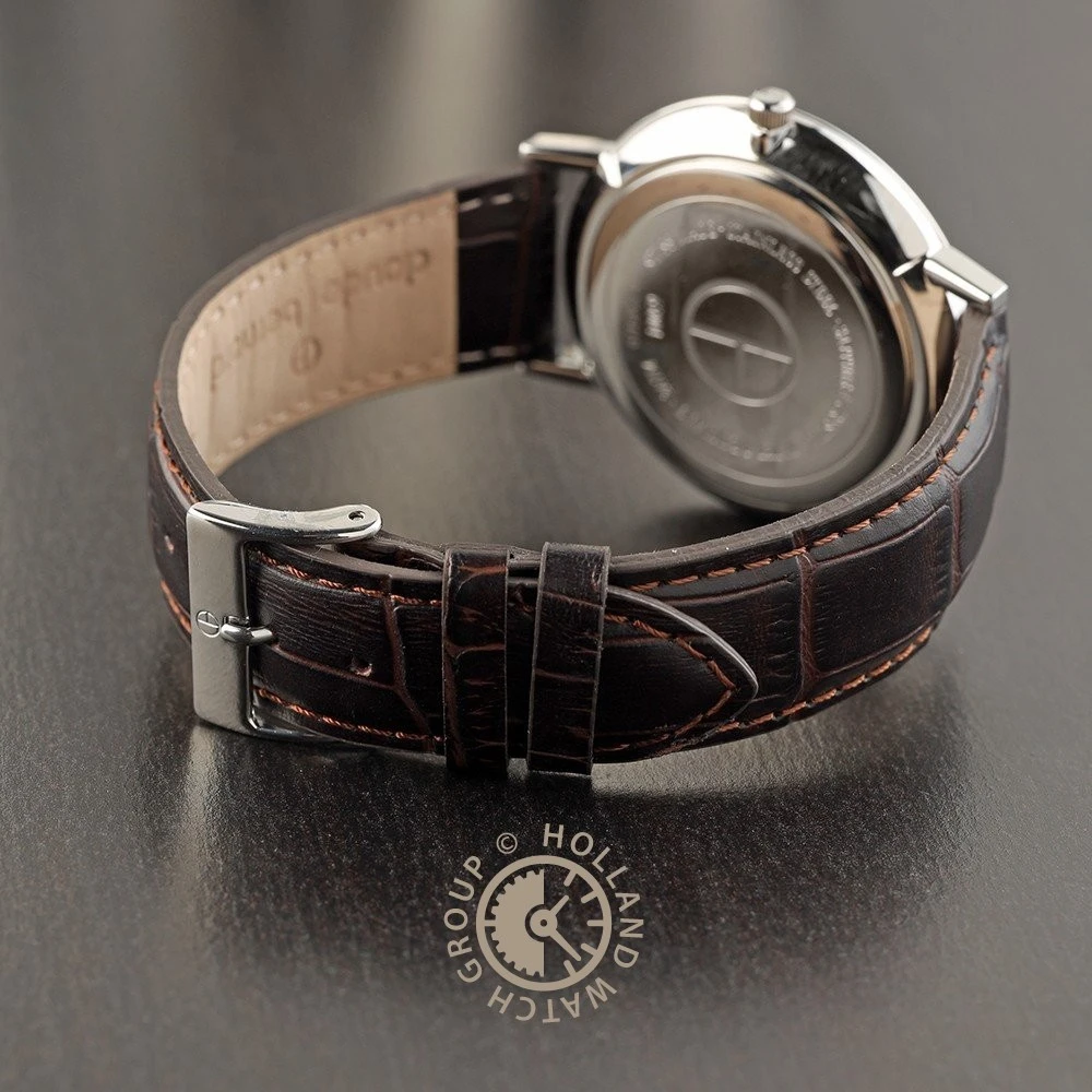This Claude Bernard watch has a case made of stainless steel with a diameter of 41 mm and is fitted with a leather band. Inside the case lies a Ronda movement and the watch features a Sapphire crystal.