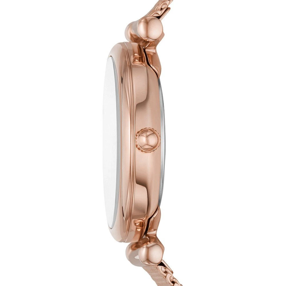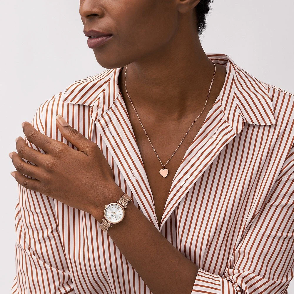 This Fossil watch has a case made of stainless steel with a diameter of 28 mm and is fitted with a metal band. Inside the case lies a Seiko Instruments Inc. movement and the watch features a Mineral crystal.