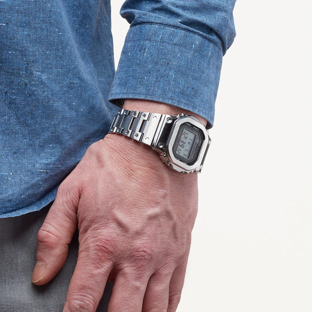 This special 35th anniversary edition is based on the original G-Shock design from the nineteeneighties but improved for the twentytwenties with a stainless steel case and Bluetooth and radio control technology.
