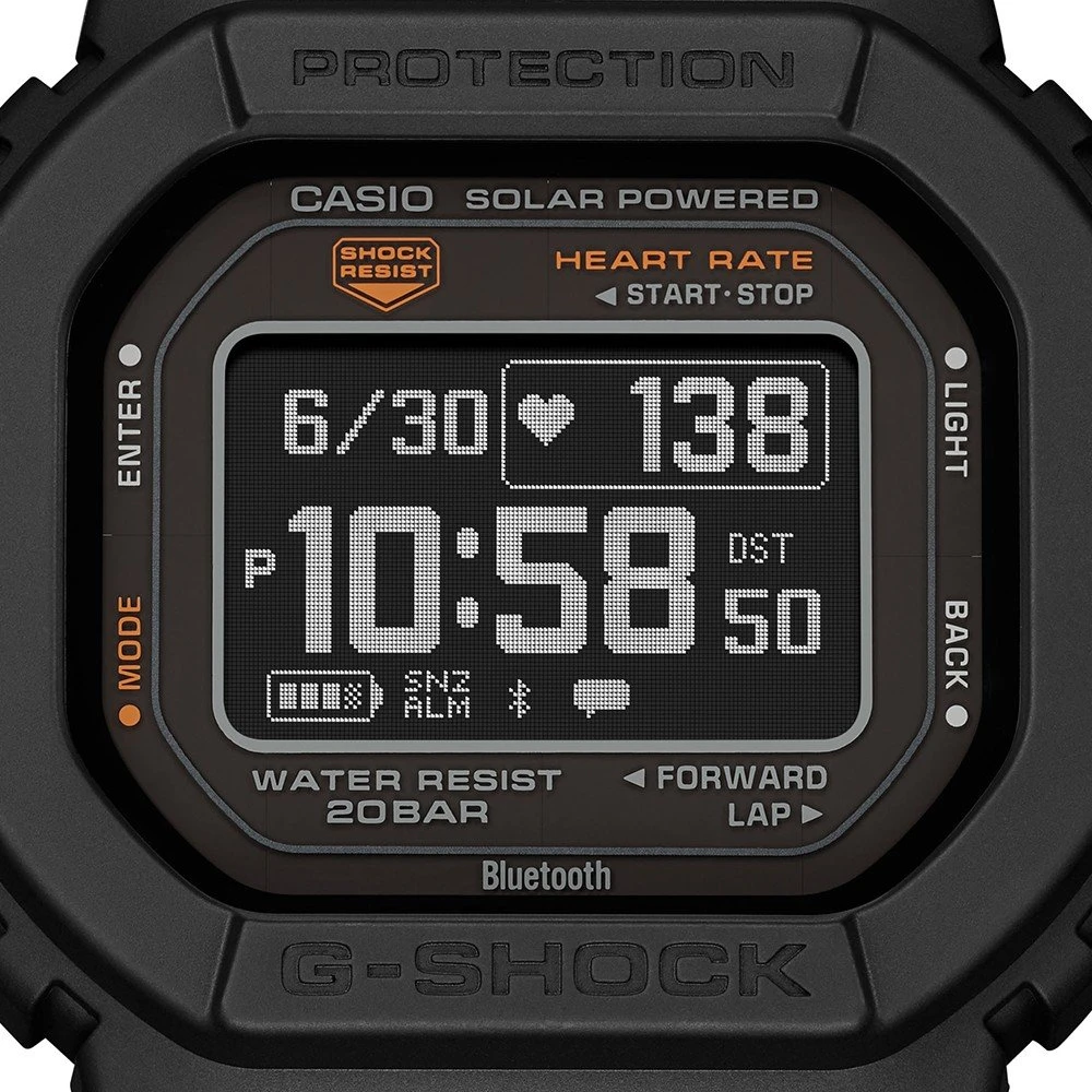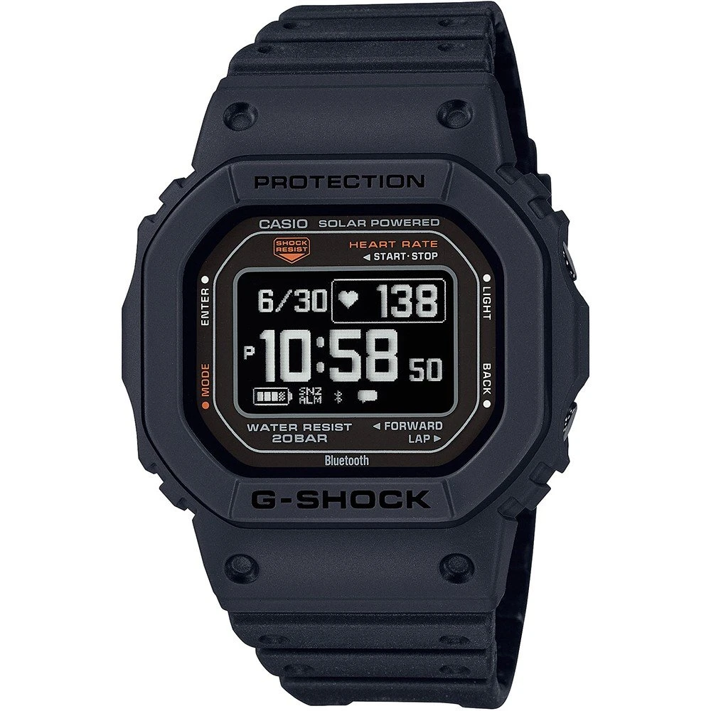 This G-Shock watch has a Bio-sourced plastic case 44 mm in diameter and is fitted with a plastic / resin strap. Inside the case lies a Casio movement and the watch features a Mineral crystal.