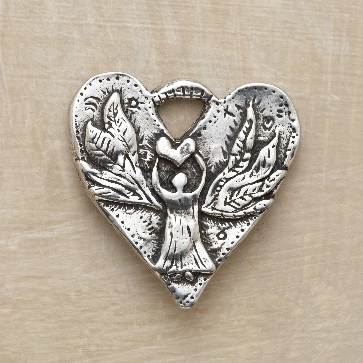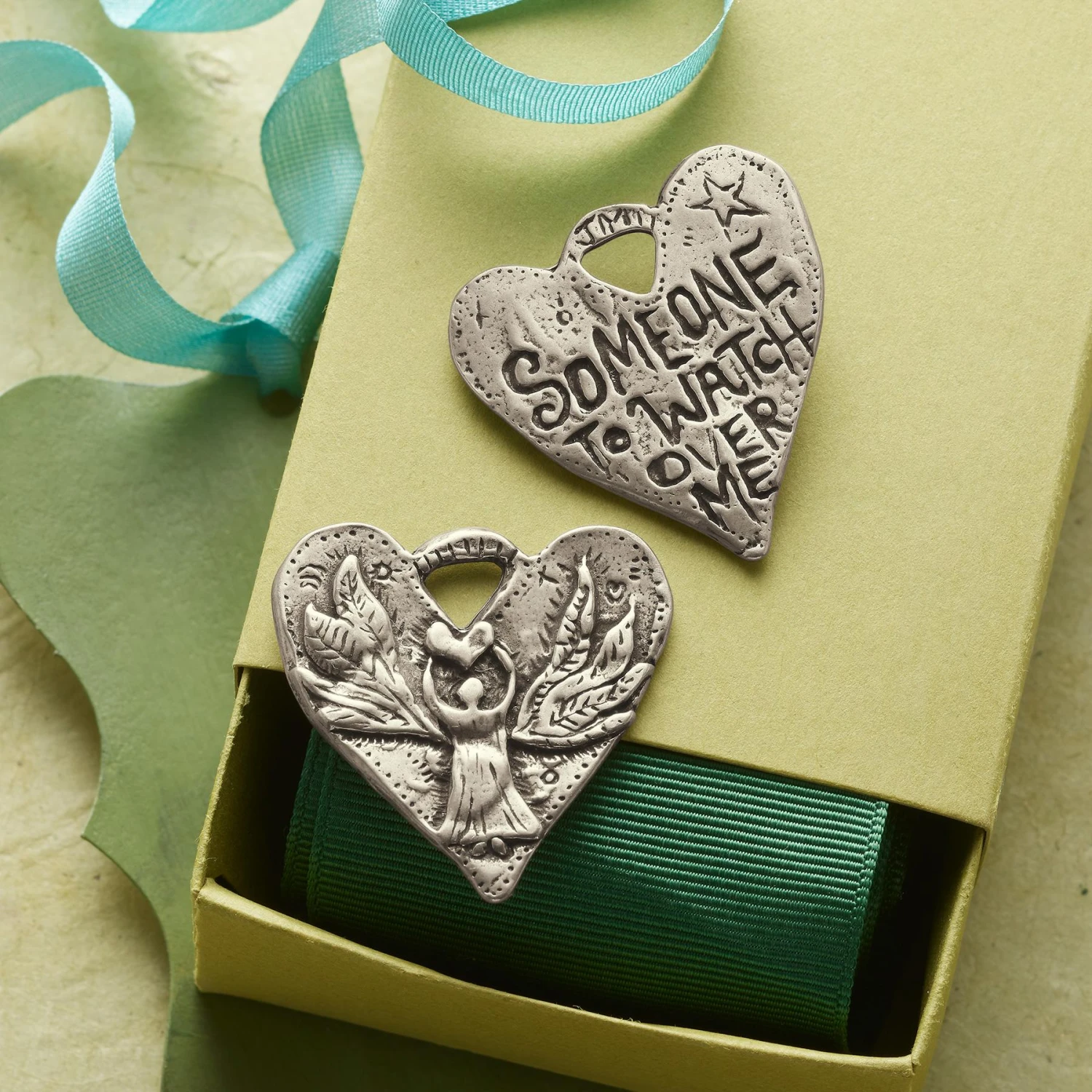 Jes MaHarry inscribes her guardian angel heart charm with a suitable sentiment: “Someone to watch over me.” The pewter talisman tucks into a pocket or dangles from a ribbon. A Sundance exclusive, handmade in USA. 1-1/8″W x 1-1/8″L.