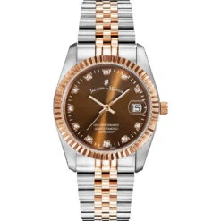 This Jacques du Manoir watch has a case made of stainless steel with a diameter of 36 mm and is fitted with a metal band. Inside the case lies a Ronda movement and the watch features a Mineral crystal.
