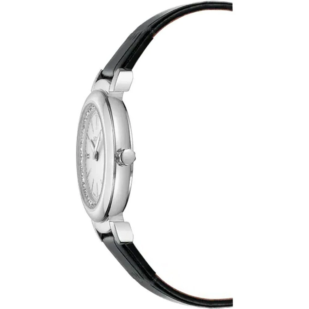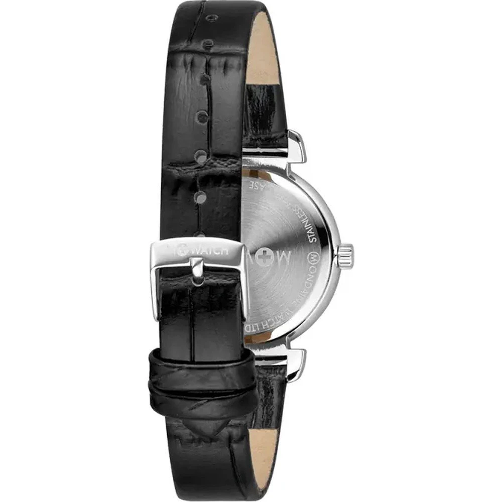 This M-Watch by Mondaine watch has a case made of stainless steel with a diameter of 30 mm and is fitted with a leather band. Inside the case lies a Ronda movement and the watch features a Hardened mineral crystal.
