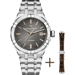 This Maurice Lacroix watch has a case made of stainless steel with a diameter of 42 mm and is fitted with a metal band. Inside the case lies a Sellita movement and the watch features a Sapphire crystal.