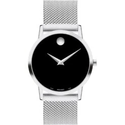 This Movado watch has a case made of stainless steel with a diameter of 33 mm and is fitted with a metal band. Inside the case lies a ETA movement and the watch features a Sapphire crystal.