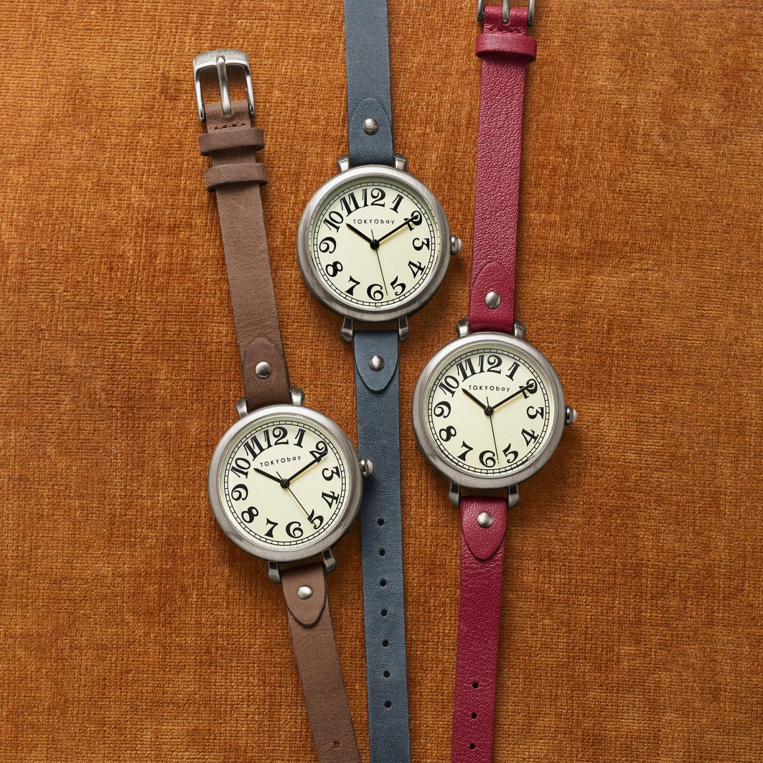 Elegant and playful, this watch with its bold, easy-to-read face and slender leather band is meticulously crafted with Japanese quartz movement and a stainless steel case and buckle. Exclusive. Fits wrists 6″ to 8″, 1-3/8″ dia. case.