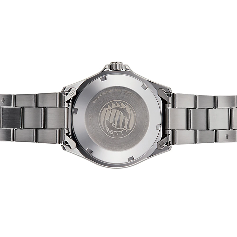 This Orient watch has a stainless steel case 42 mm in diameter and is fitted with a metal strap. Inside the case lies a Orient movement and the watch features a Sapphire crystal.