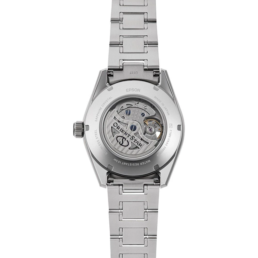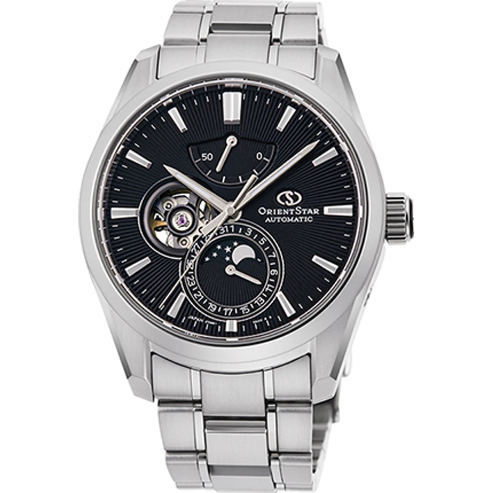 This Orient watch has a case made of stainless steel with a diameter of 41 mm and is fitted with a metal band. Inside the case lies a Orient movement and the watch features a Sapphire crystal.