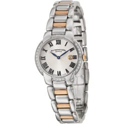 This Raymond Weil watch has a case made of stainless steel with a diameter of 35 mm and is fitted with a metal band. Inside the case lies a ETA movement and the watch features a Sapphire crystal.