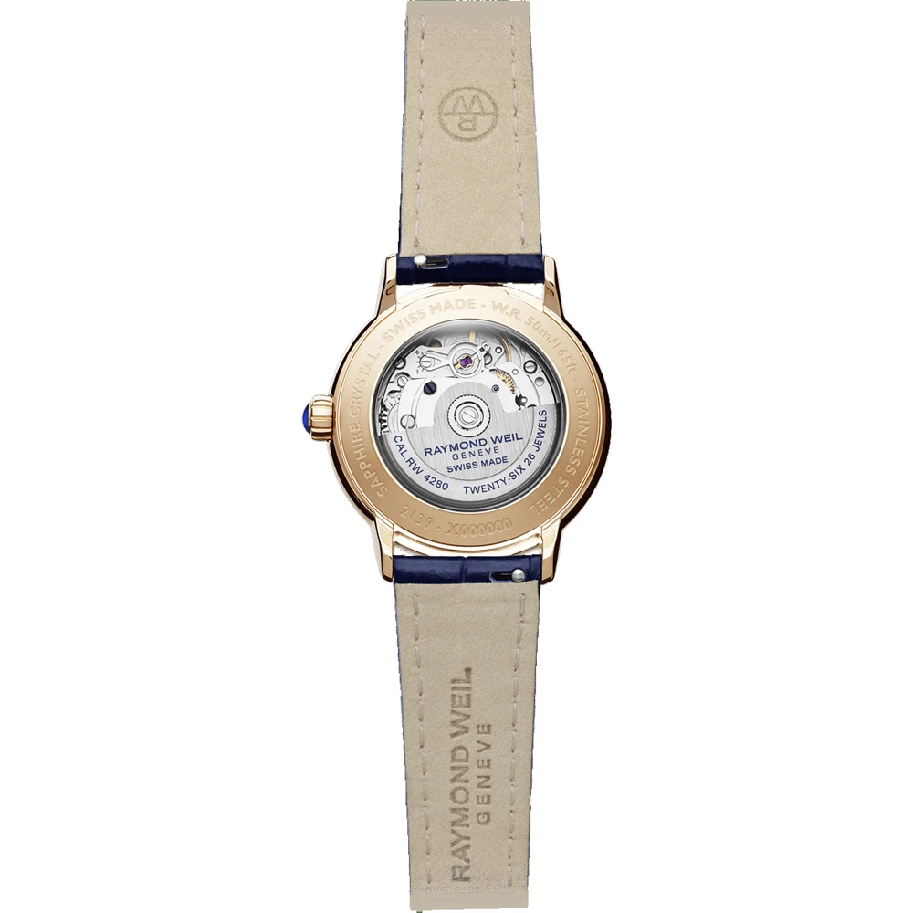 This Raymond Weil watch has a case made of stainless steel with a diameter of 34 mm and is fitted with a leather band. Inside the case lies a Sellita movement and the watch features a Sapphire crystal.