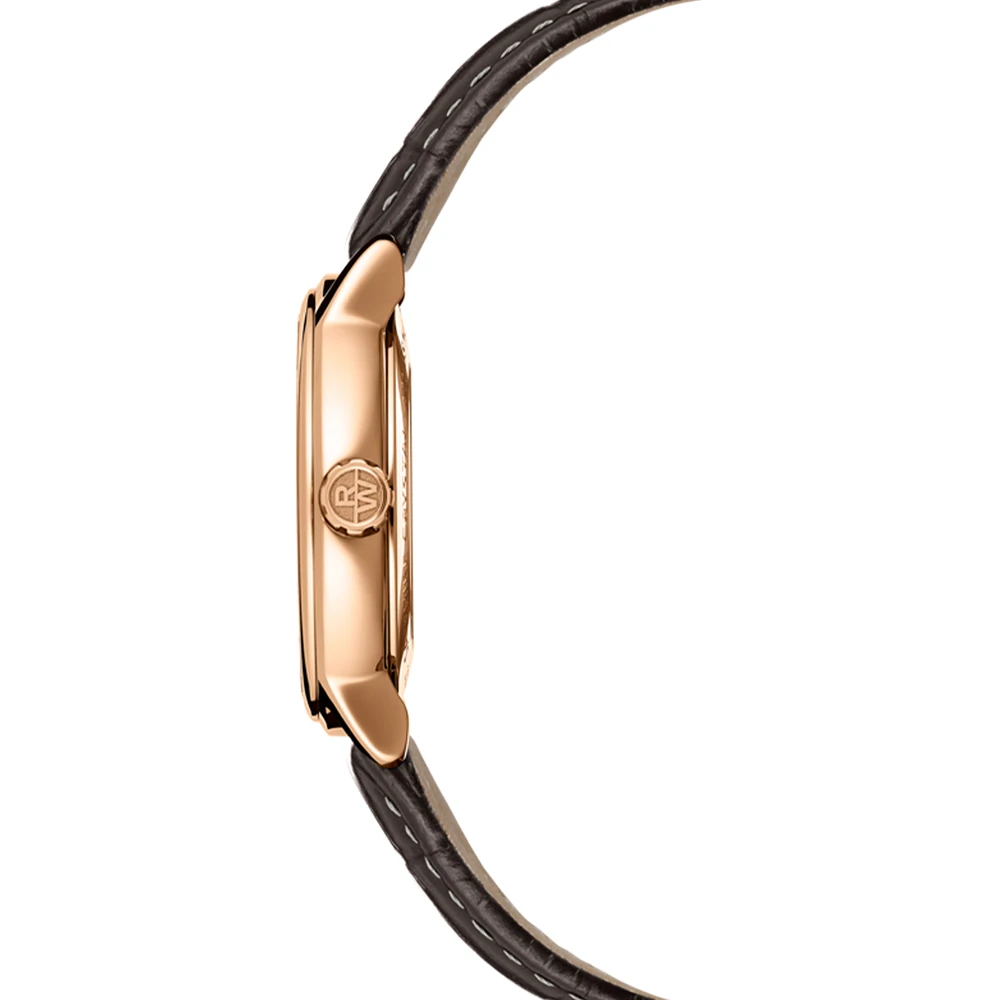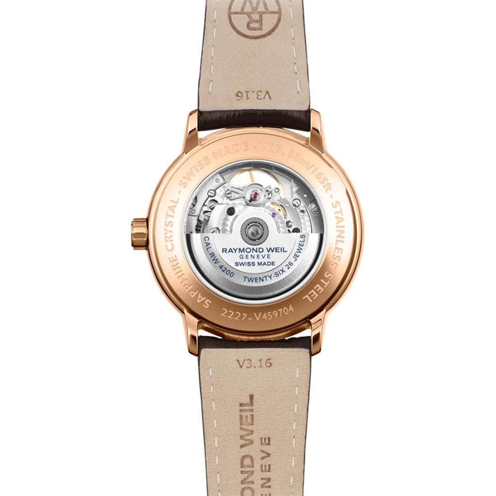 This Raymond Weil watch has a case made of stainless steel with a diameter of 39.5 mm and is fitted with a leather band. Inside the case lies a Sellita movement and the watch features a Sapphire crystal.