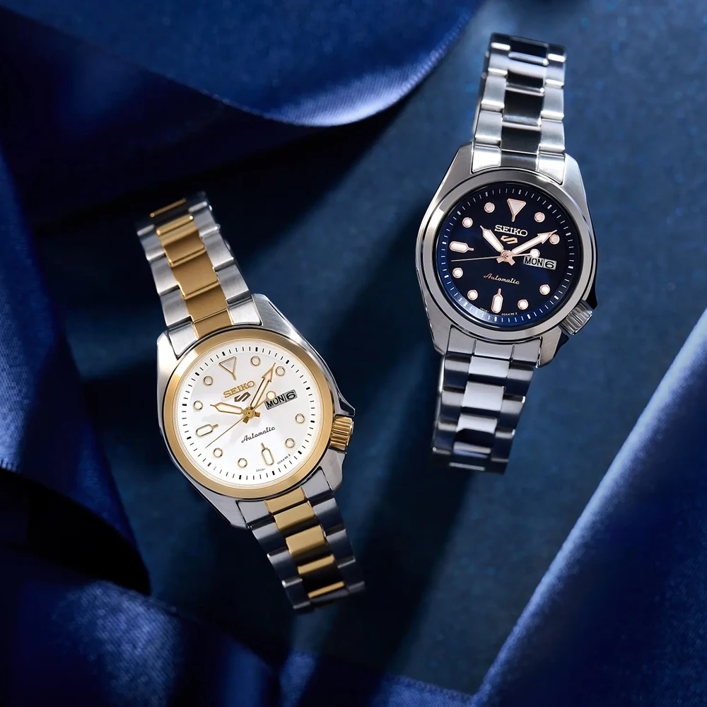 This Seiko watch has a case made of stainless steel with a diameter of 28 mm and is fitted with a metal band. Inside the case lies a Seiko movement and the watch features a Hardlex crystal crystal.