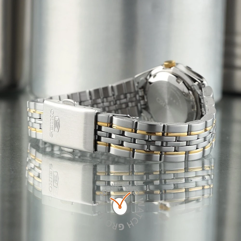 This Seiko watch has a case made of stainless steel with a diameter of 25 mm and is fitted with a metal band. Inside the case lies a Seiko movement and the watch features a Hardlex crystal crystal.