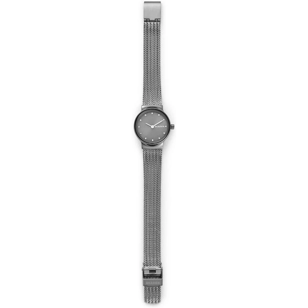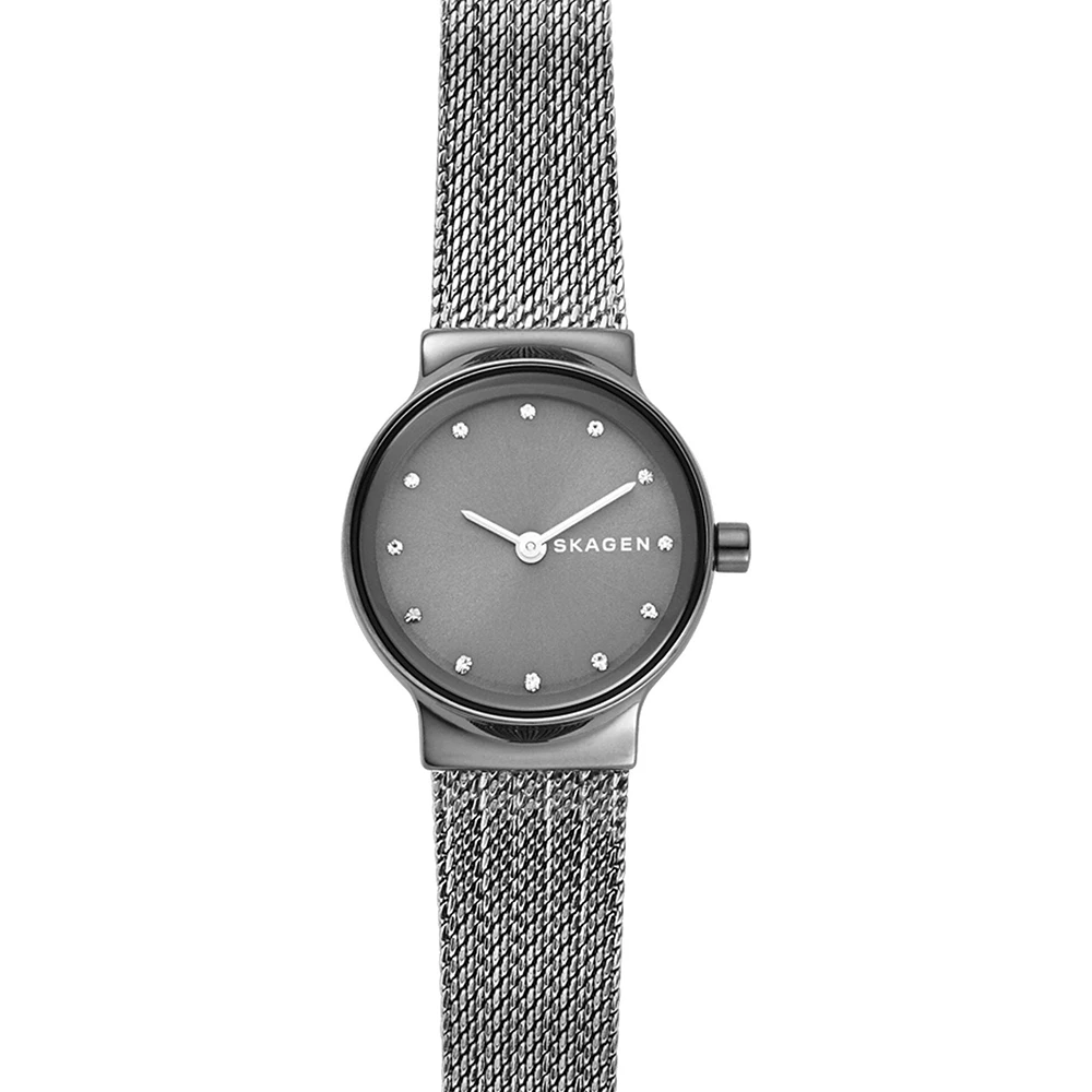 This Skagen watch has a case made of stainless steel with a diameter of 26 mm and is fitted with a metal band. Inside the case lies a Miyota movement and the watch features a Mineral crystal.