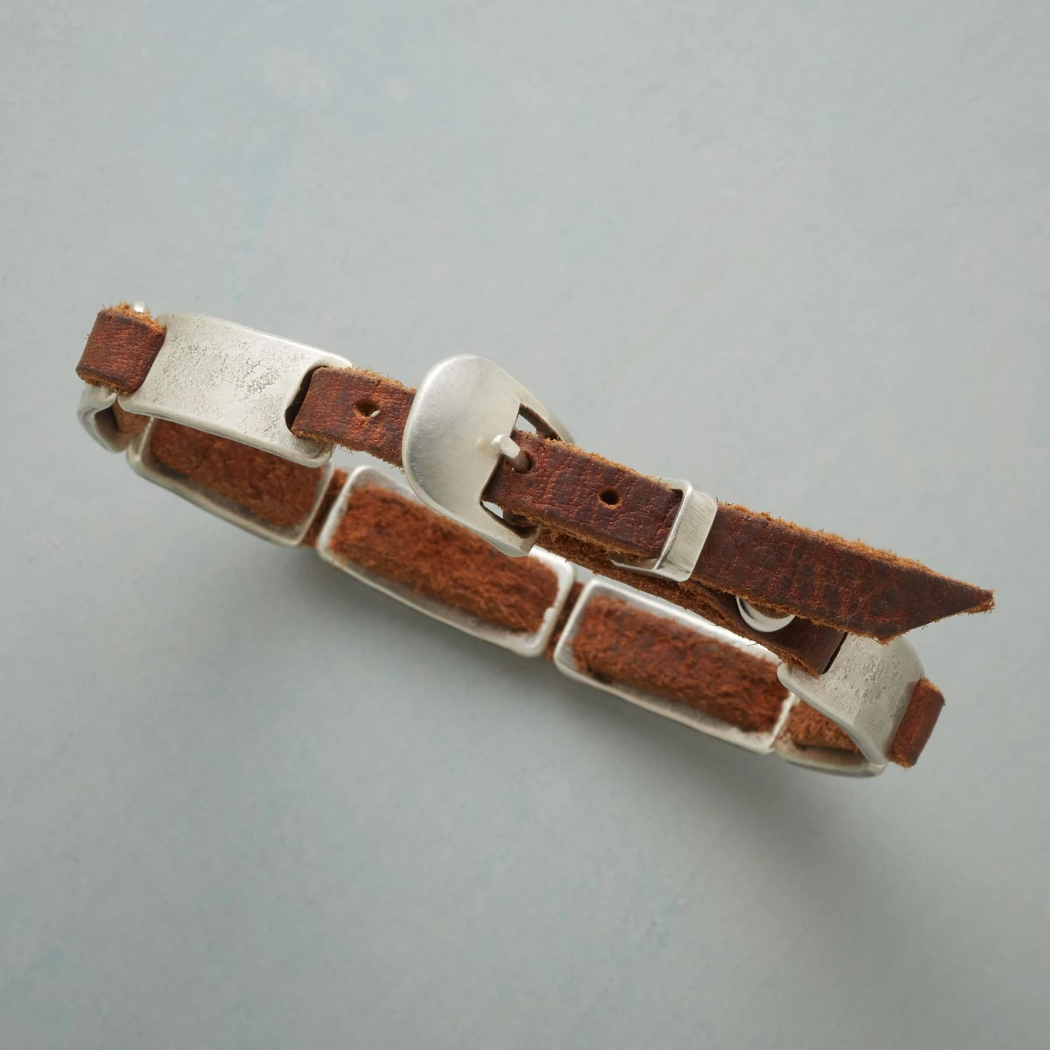 Handcrafted by Dennis Hogan, this supple leather bracelet is laced with sterling silver bars carefully curved to fit comfortably around your wrist. Sterling buckle. USA. Exclusive. Approx. 7-1/2″ to 8-1/2″L.