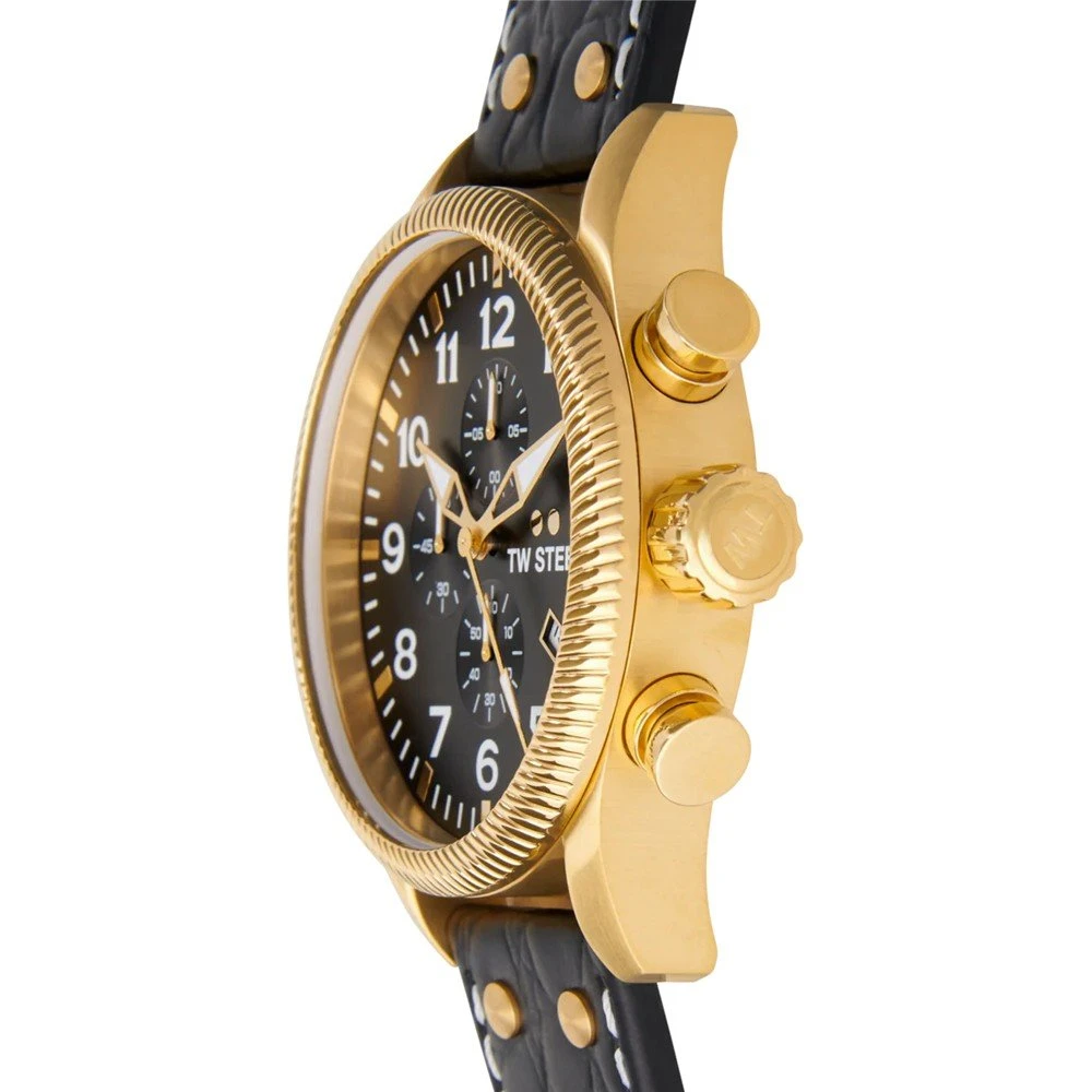 This TW Steel watch has a case made of stainless steel with a diameter of 48 mm and is fitted with a leather band. Inside the case lies a Seiko Instruments Inc. movement and the watch features a Mineral crystal.