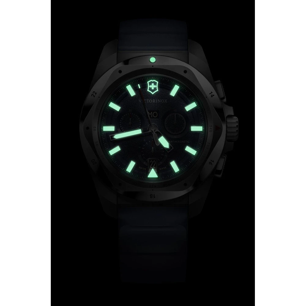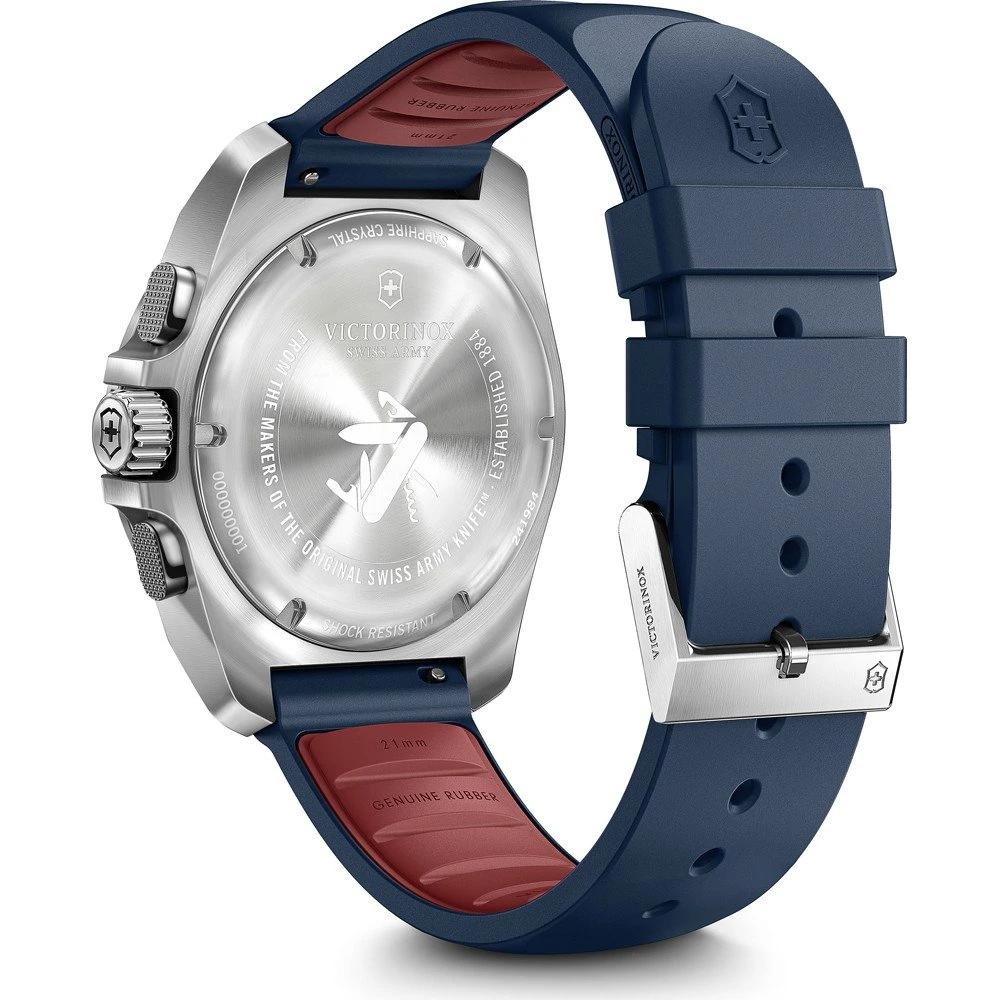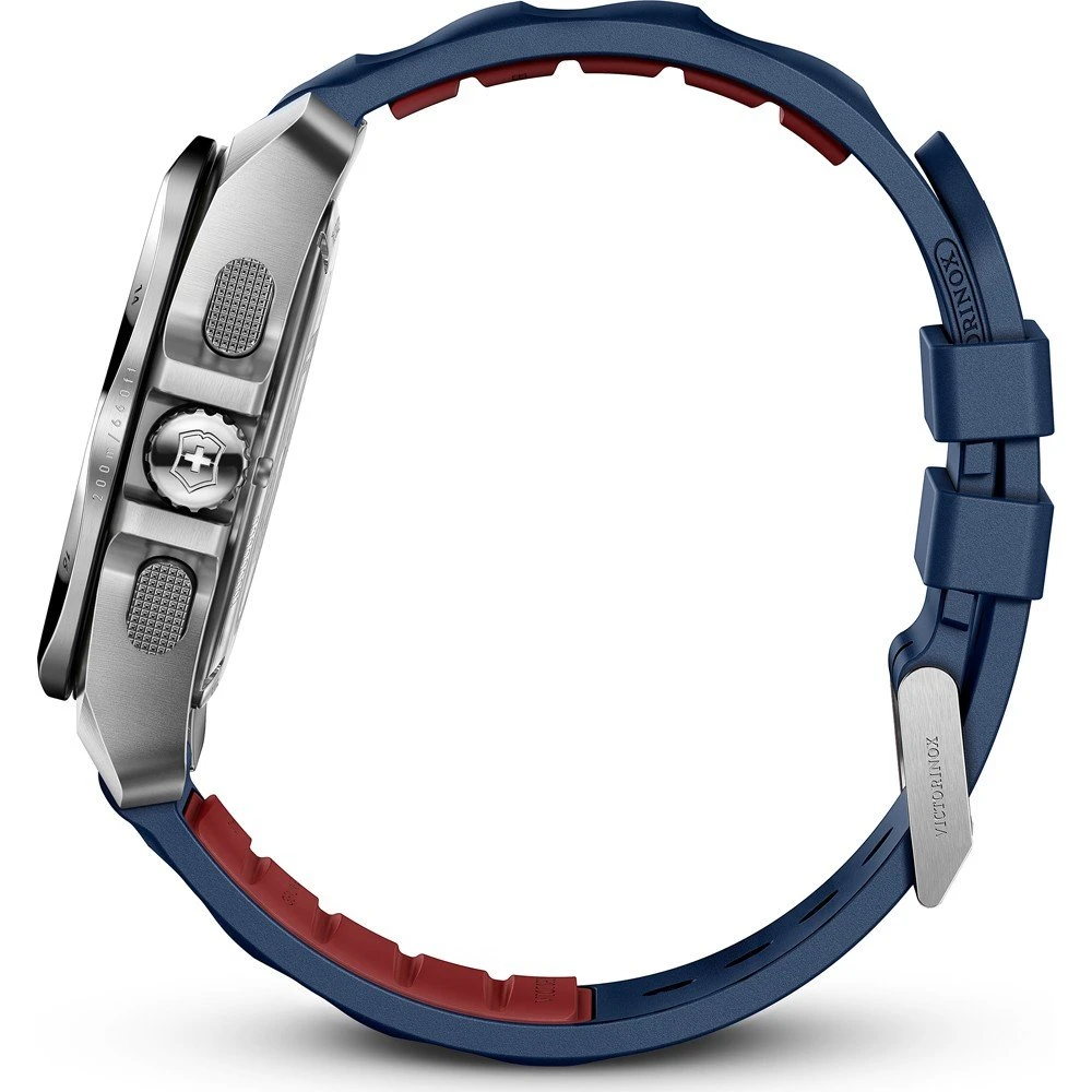 This Victorinox Swiss Army watch has a case made of stainless steel with a diameter of 43 mm and is fitted with a rubber band. Inside the case lies a Ronda movement and the watch features a Sapphire crystal.