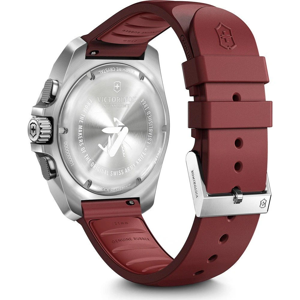 This Victorinox Swiss Army watch has a case made of stainless steel with a diameter of 43 mm and is fitted with a rubber band. Inside the case lies a Ronda movement and the watch features a Sapphire crystal.